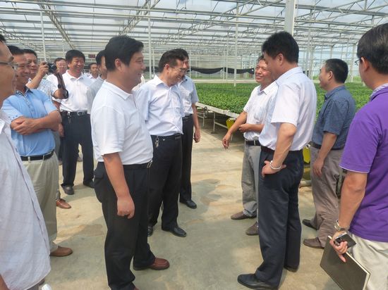 2014年8月15日,聊城冠县副县长王守良一行参观安信甜椒苗基地。